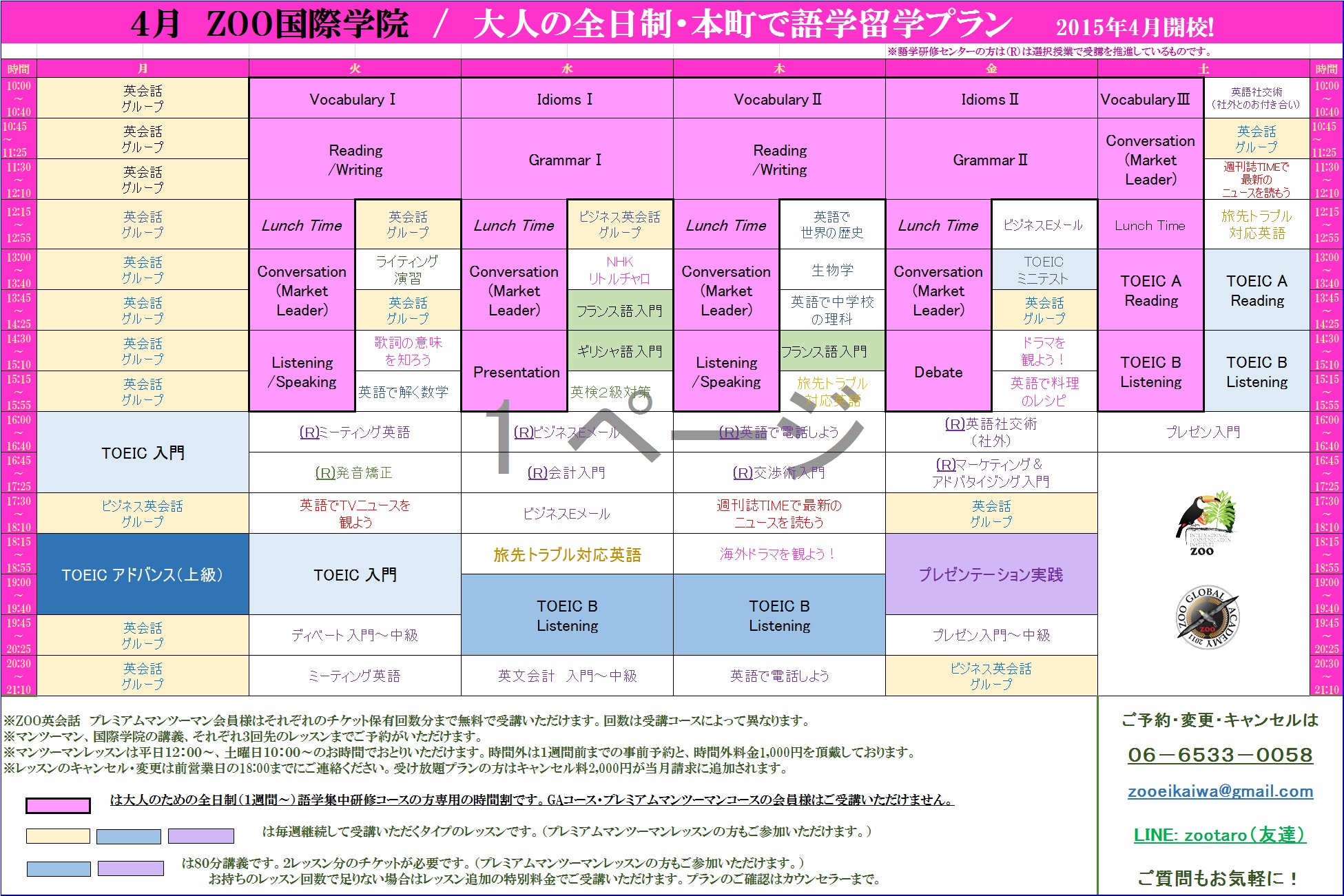 >☆ZOO国際学院4月のスケジュール☆ 2015-03-24 21:10:22