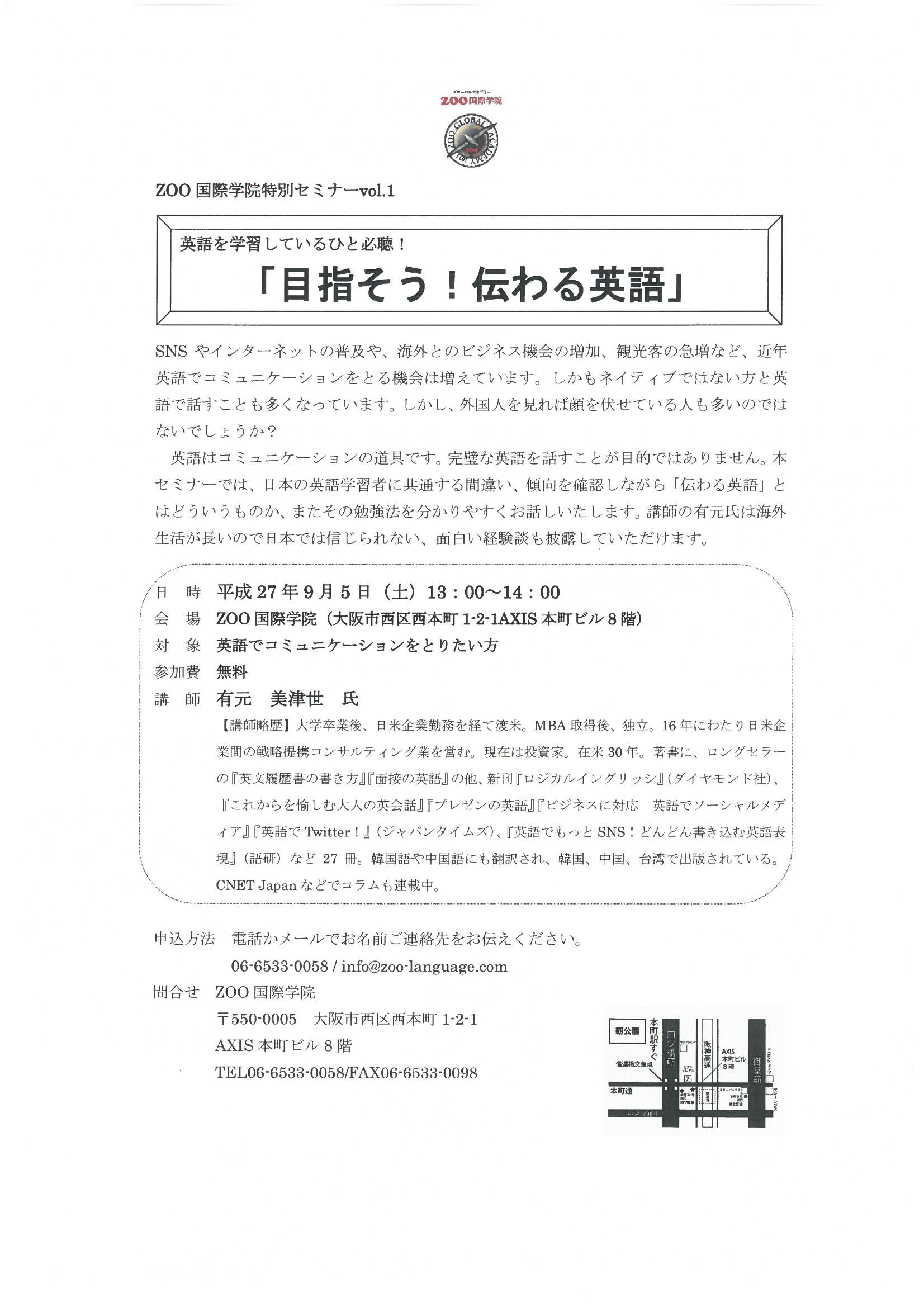 >☆特別セミナー「目指そう!伝わる英語」開催☆ 2015-08-25 17:07:38
