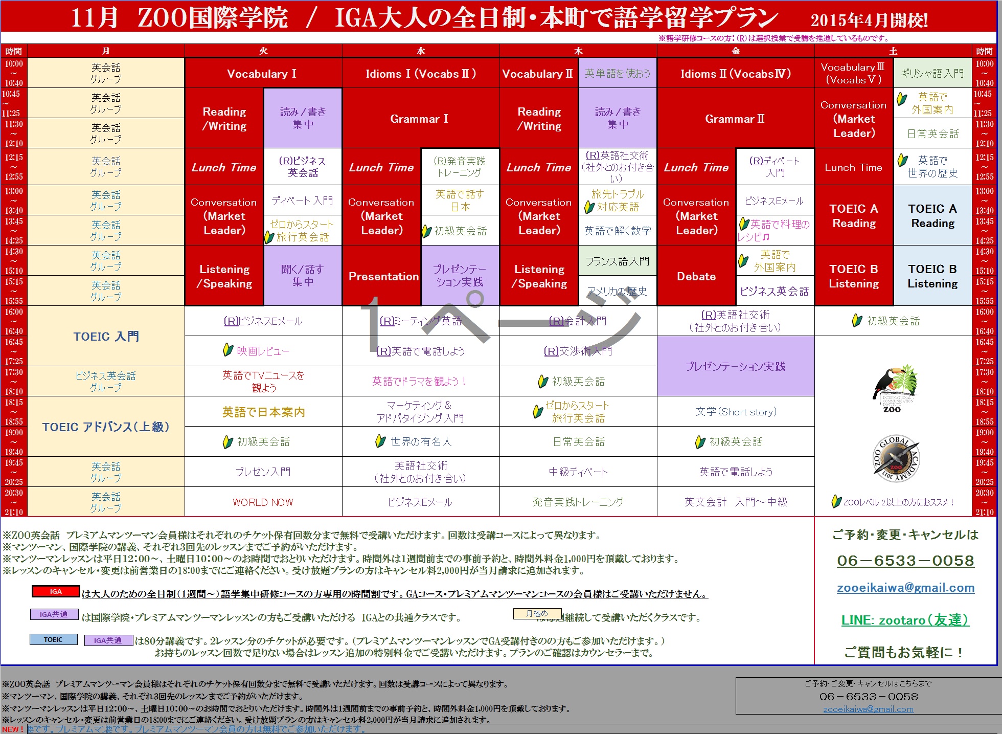 さて、ZOO国際学院11月のスケジュールをお届けいたします。