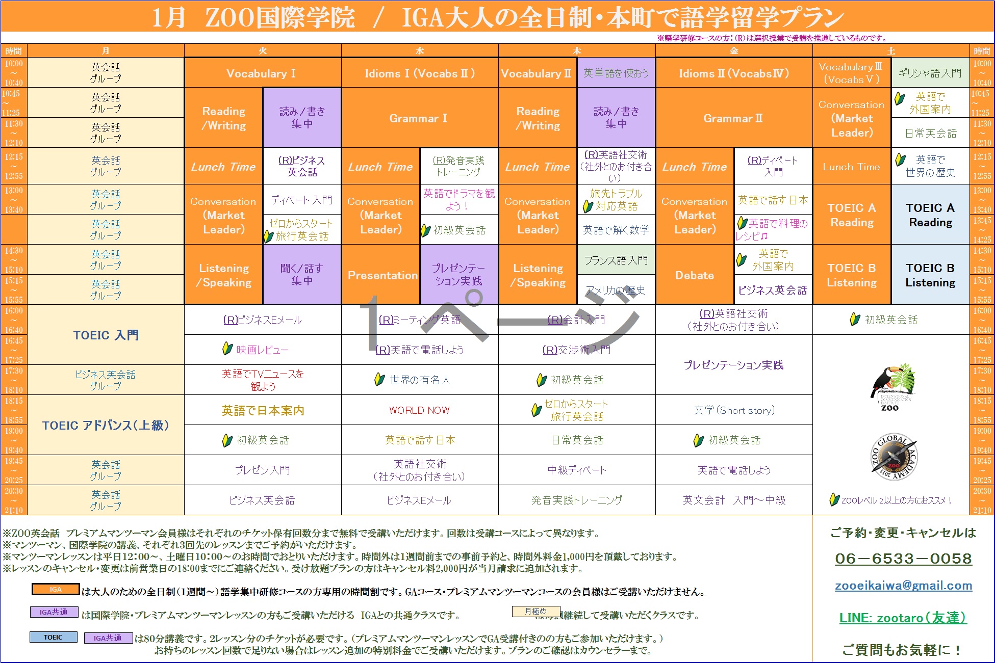 さて、遅くなりましたが、1月の国際学院スケジュールをお届けいたします。
